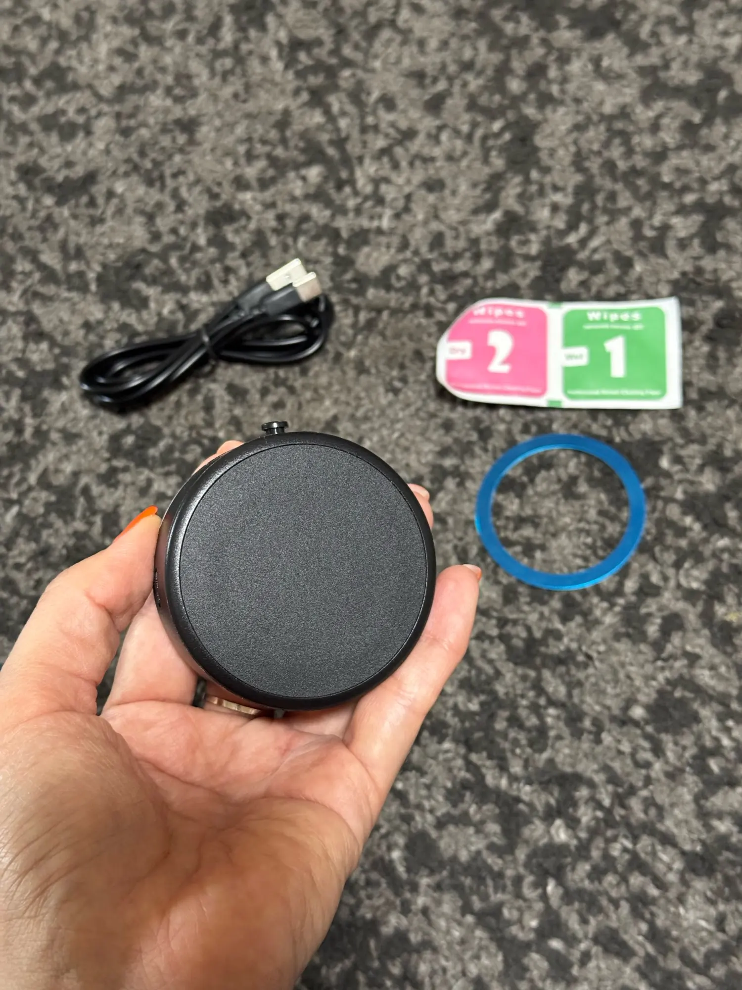 Press it onto the surface with a button and it sticks. Press the button to release. In general, a crazy piece. Attached to a wooden table and it was holding up, after some time it re-suction itself so as not to fall away. It’s rechargeable, and if you don't have a magnetic case in the kit, a magnetic ring per case. Holds up with confidence and not scary.